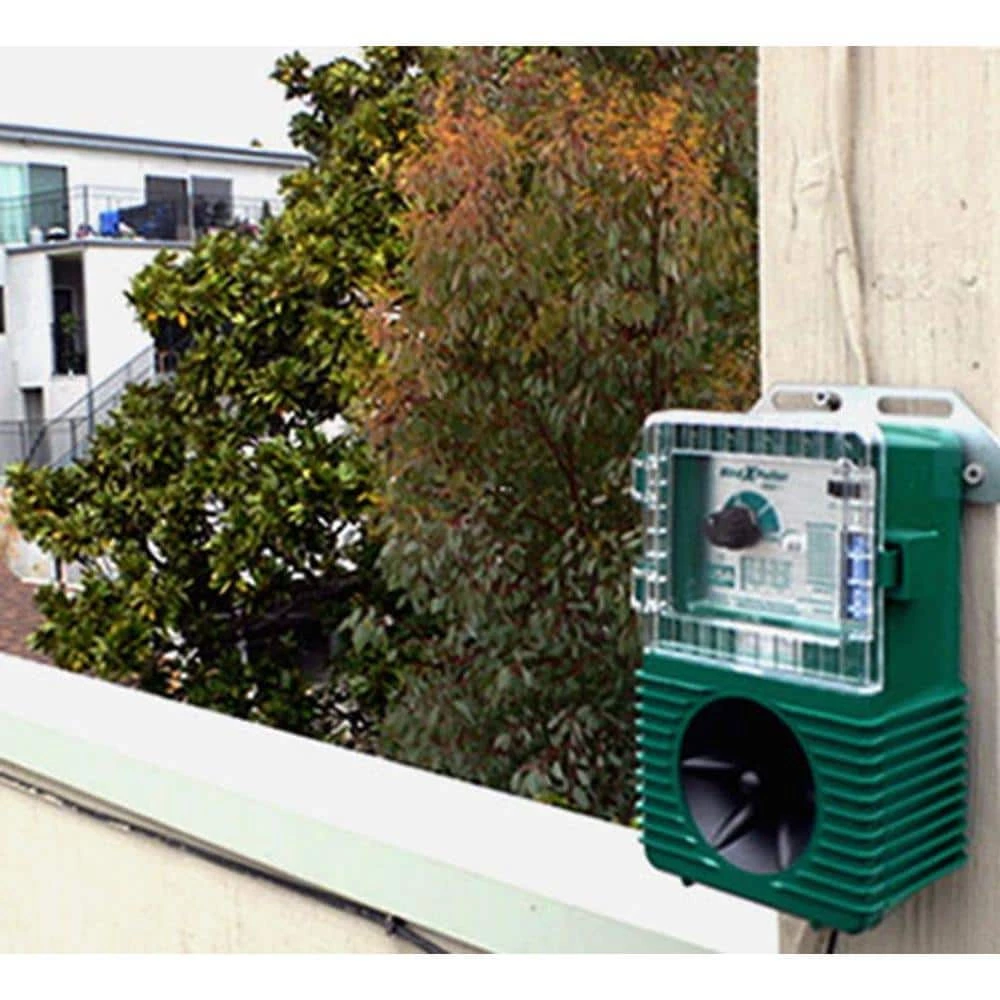 - Uses natural predator and distress sounds to control birds around your property