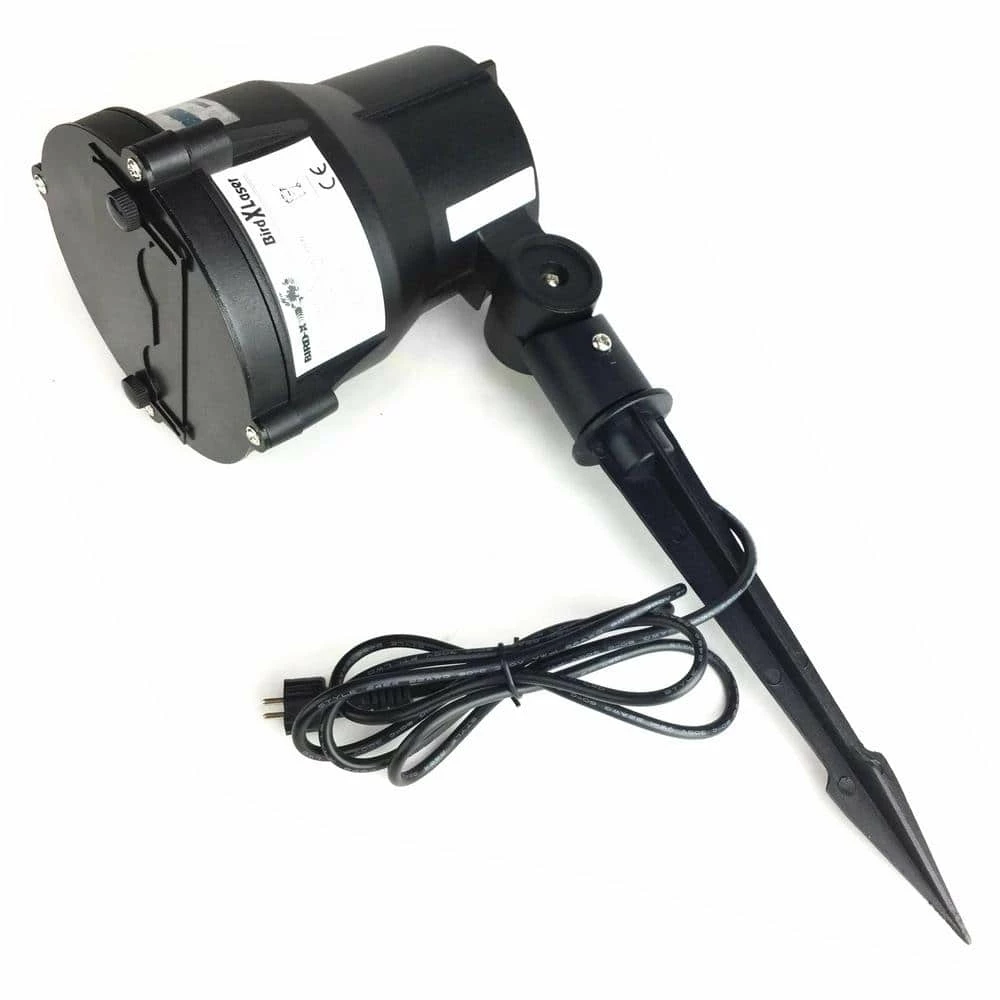 Remote controlled laser bird control device safely frigh10s birds away. Uses laser technology at random intervals in red and green color combinations birds hate, forcing them to find calmer landing areas. Laser beams appear in 2 alarming colors detectable by birds. Randomized laser patterns constantly change to prevent acclimation. Remote control included for access anywhere. Mounting base included. Use to drive birds away at night from trees and other areas. Mostly for night applications.