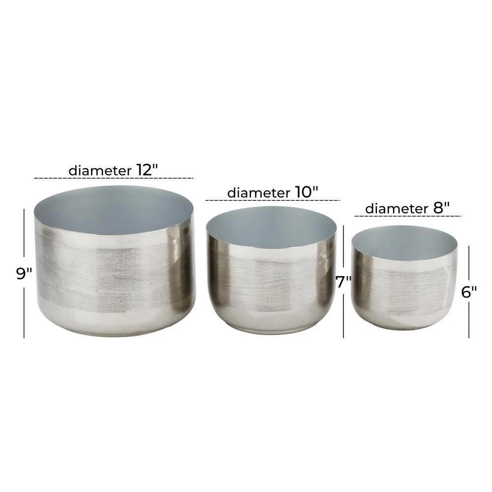 - This set of 3 metal planters features a shiny silver finish that brings elegance to any space