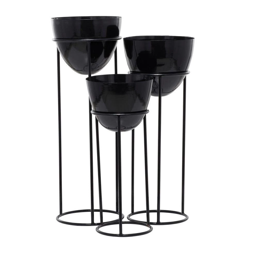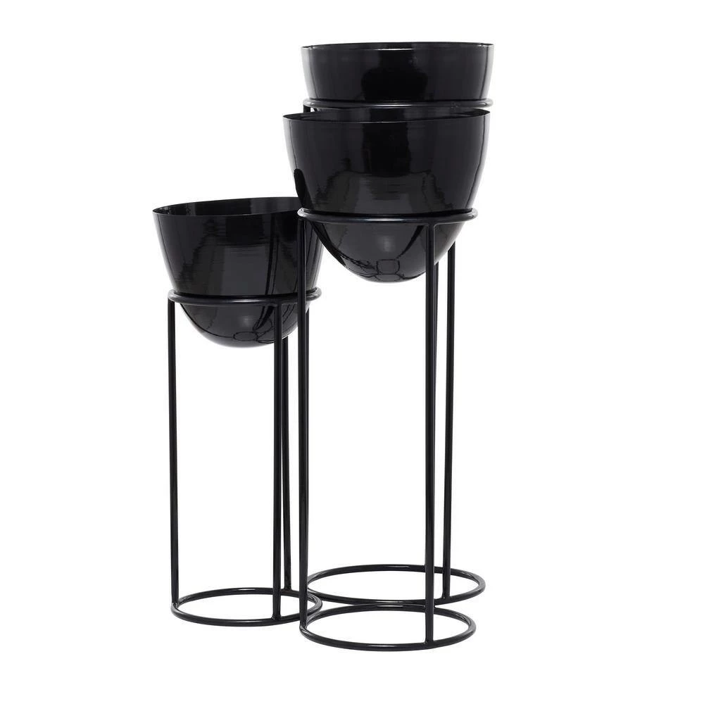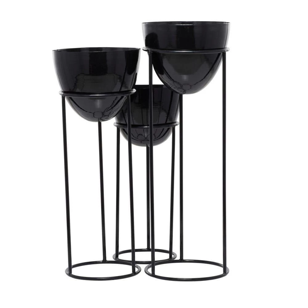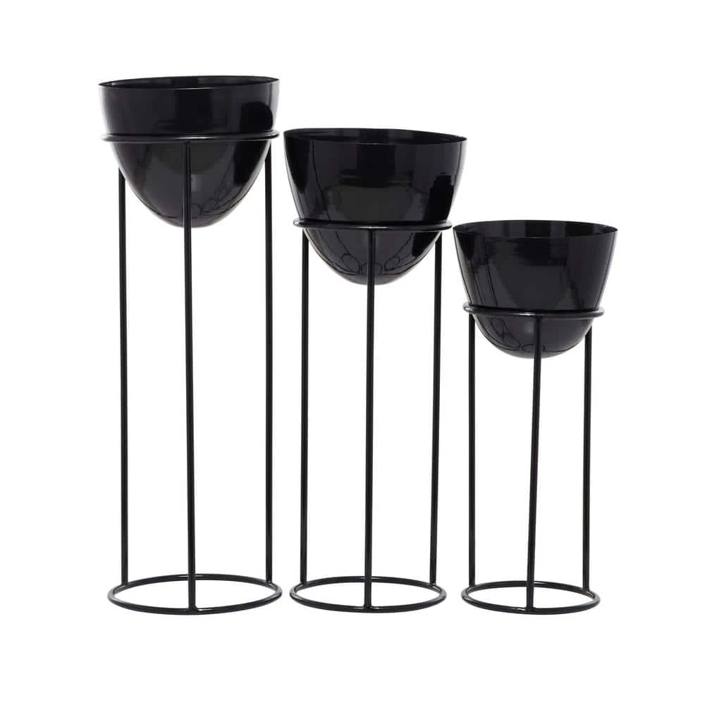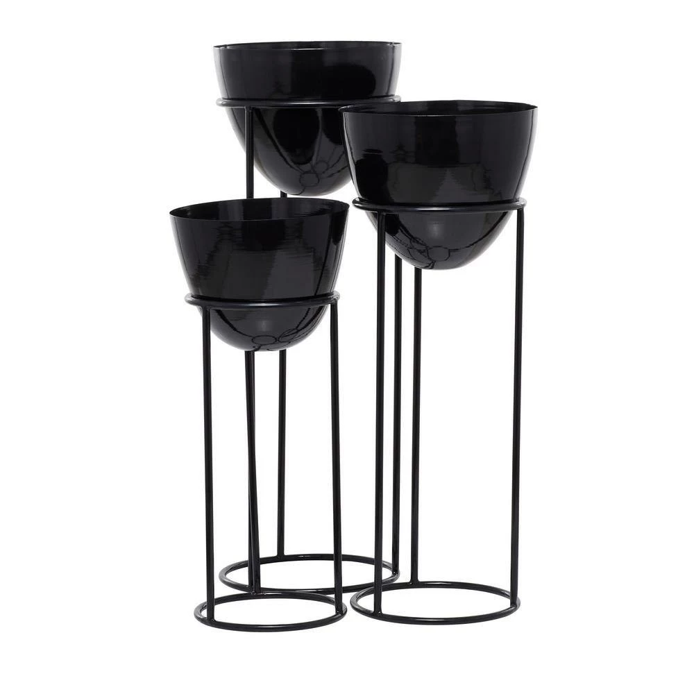 - Set of tall black planters with stands is crafted of quality and robust metal