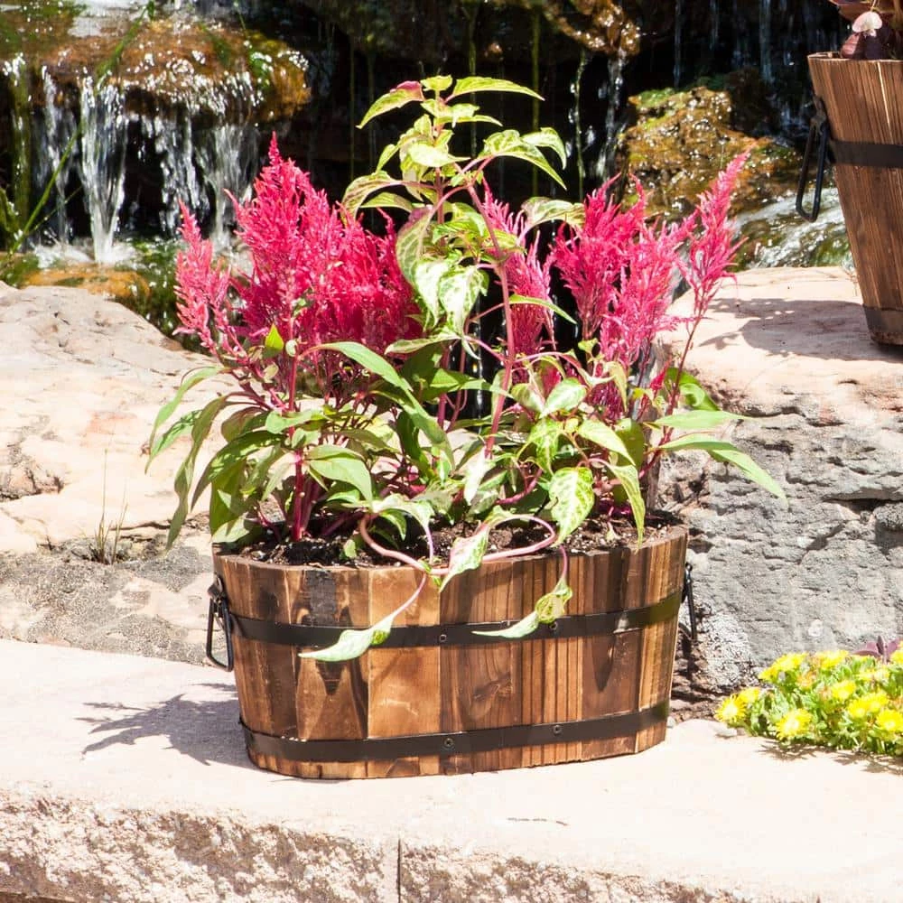 Accent your outdoor space with vibrant flowers and plants with this small oval wooden planter. Made from high quality cedar, this charming planter has drainage holes to prevent overwatering and is reinforced with steel bands for extra stability. A weather-resistant coating means you’ll enjoy your flowers season after season.