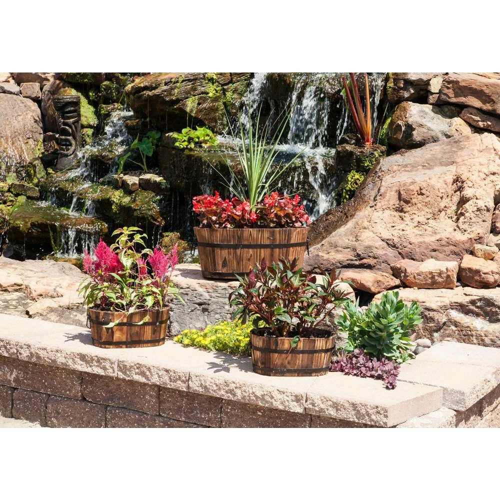 - Set includes 12 in. x 7 in. x 5 in., 15 in. x 9 in. x 6 in., 18 in. x 11 in. x 7 in., and 20 in. x 12 in. x 8 in. planters