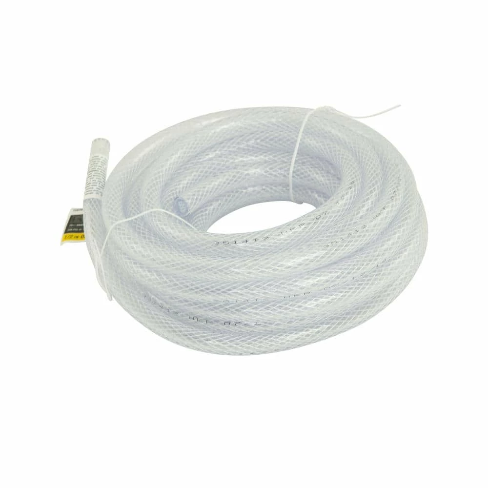 This braided vinyl tubing is made from polyester braided reinforced polyvinyl chloride and has the strength to withstand 4 times the working pressure of single wall PVC. The smooth, dense bore of the tubing maximizes flow rate and reduces sediment buildup. It has excellent resistance to acids, alkalis and many solvents, and handles a wide variety of chemicals, gases and liquids. It provides superior performance under severe operating conditions, and is excellent for hydraulic, pneumatic and vacuum lines.