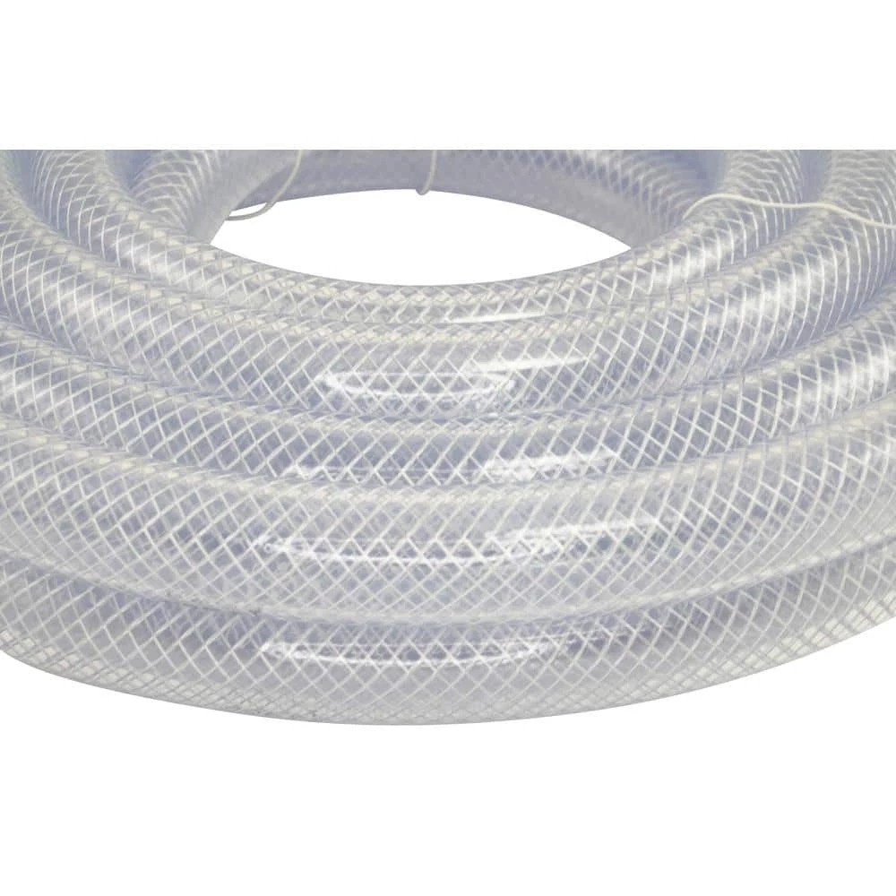 This braided vinyl tubing is made from polyester braided reinforced polyvinyl chloride and has the strength to withstand 4 times the working pressure of single wall PVC. The smooth, dense bore of the tubing maximizes flow rate and reduces sediment buildup. It has excellent resistance to acids, alkalis and many solvents, and handles a wide variety of chemicals, gases and liquids. It provides superior performance under severe operating conditions, and is excellent for hydraulic, pneumatic and vacuum lines.