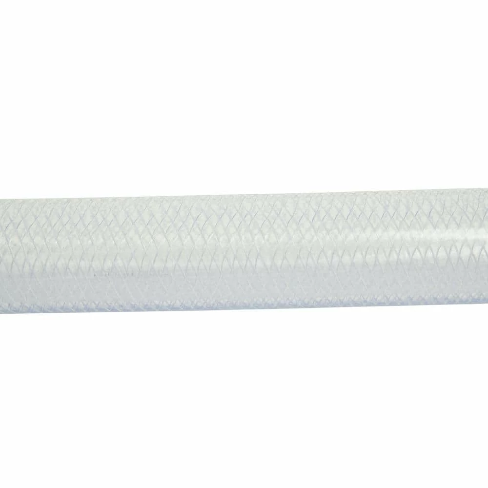 This braided vinyl tubing is made from polyester braided reinforced polyvinyl chloride and has the strength to withstand 4 times the working pressure of single wall PVC. The smooth, dense bore of the tubing maximizes flow rate and reduces sediment buildup. It has excellent resistance to acids, alkalis and many solvents, and handles a wide variety of chemicals, gases and liquids. It provides superior performance under severe operating conditions, and is excellent for hydraulic, pneumatic and vacuum lines.