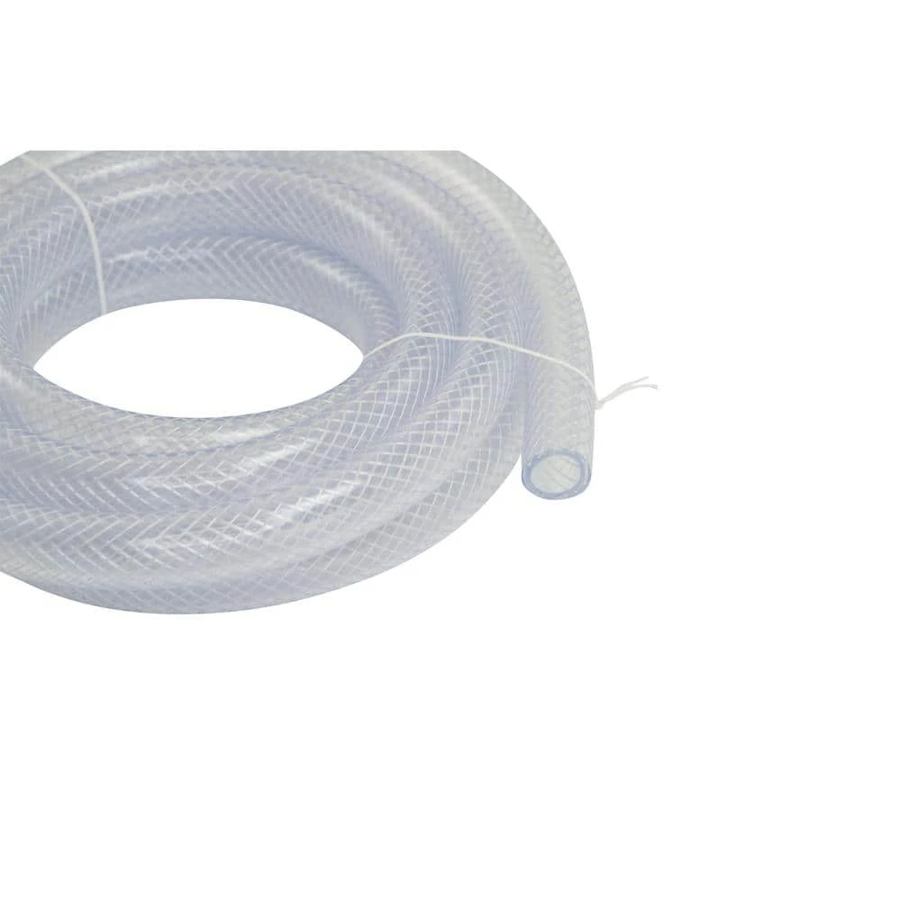 This braided vinyl tubing is made from polyester braided reinforced polyvinyl chloride and has the strength to withstand 4 times the working pressure of single wall PVC. The smooth, dense bore of the tubing maximizes flow rate and reduces sediment buildup. It has excellent resistance to acids, alkalis and many solvents, and handles a wide variety of chemicals, gases and liquids. It provides superior performance under severe operating conditions, and is excellent for hydraulic, pneumatic and vacuum lines.