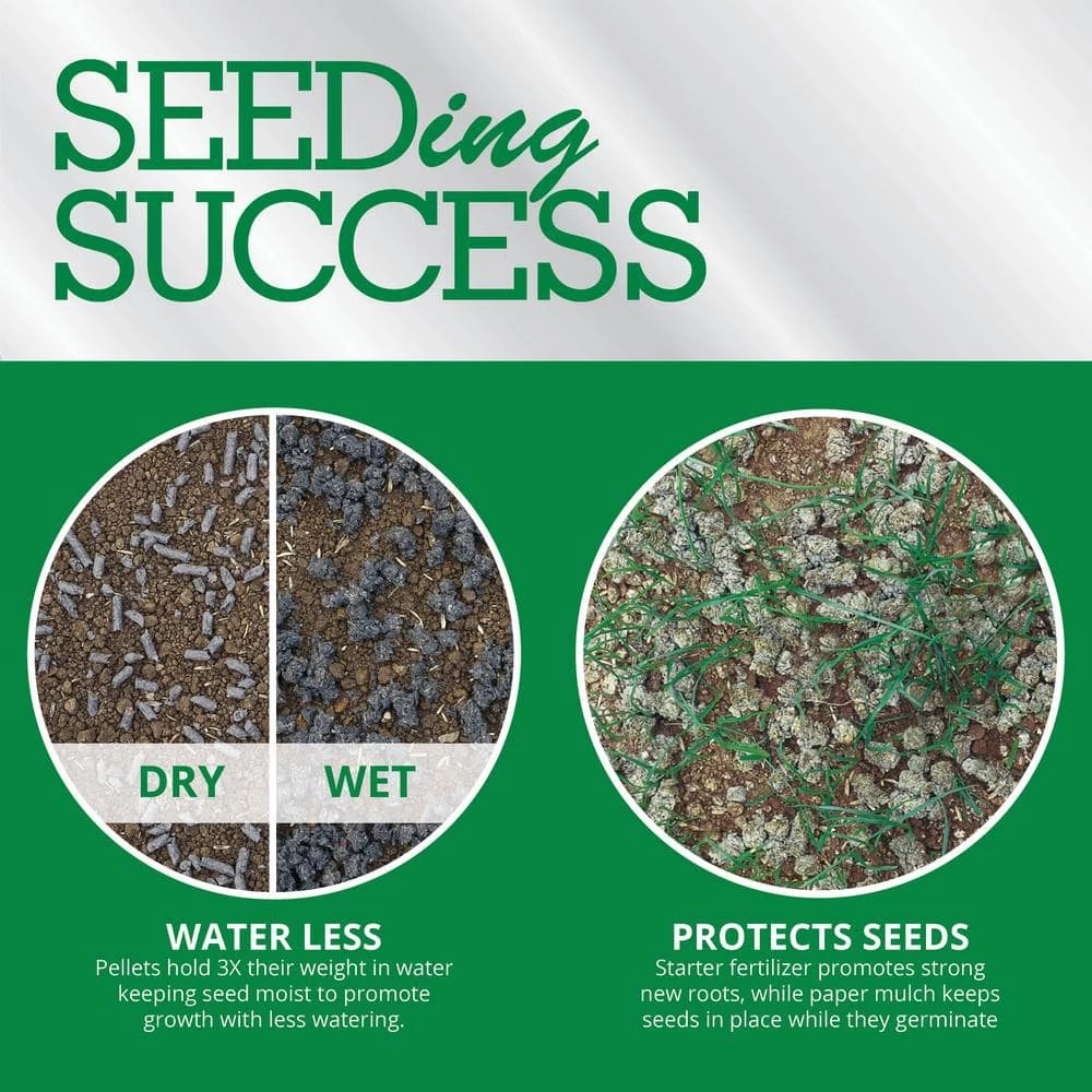 GreenView Fairway Formula Seeding Success is a combination starter fertilizer and seeding mulch that helps maintain moisture in the planted area, so grass seeds successfully germinate. The paper mulch is completely biodegradable and is combined with fertilizer, a wetting agent and special tackifier that helps keep mulch in place to protect the seed while it germinates – even on rainy and windy days or when seeding a sloped area. Grass seed is not included – you choose the grass seed that best suits your lawn.