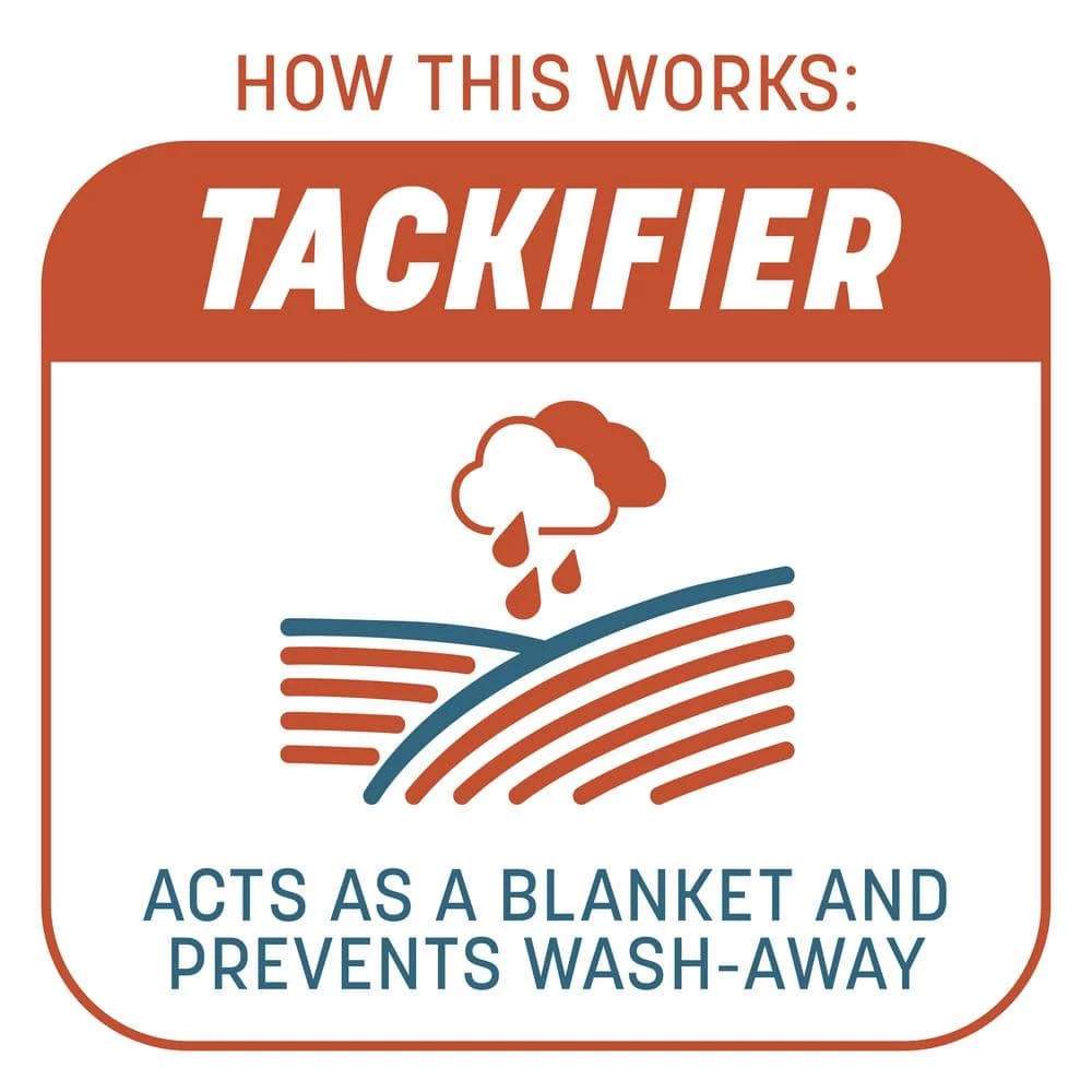 - Tackifier acts as a blanket – protecting your seed from washing away