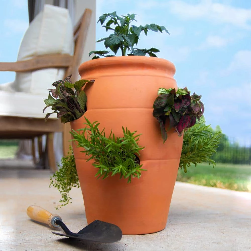 - Terra cotta material is porous and allows roots to breath, it also helps balance pH levels for healthier plants
