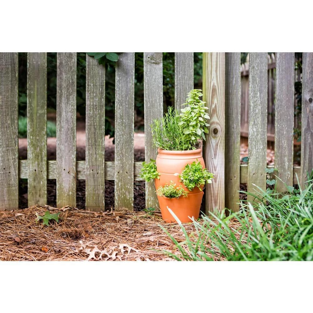 The Pennington Terra Cotta Strawberry Jar has 6 pockets and a 2 Gal. capacity. It is ideal for strawberries, and succulents like hens and chicks. Translating simply to “Baked Earth” in Latin. Please note: This item is handmade and dimensions may vary slightly, but no more than one-half inch from the specifications provided. Terra cotta pots and saucers of the same size will be best paired together. For example, the 6-inch pot should be paired with the 6-inch saucer and the 10-inch pot should be paired with the 10-inch saucer. Pots, saucers, and pot feet are all sold separately.