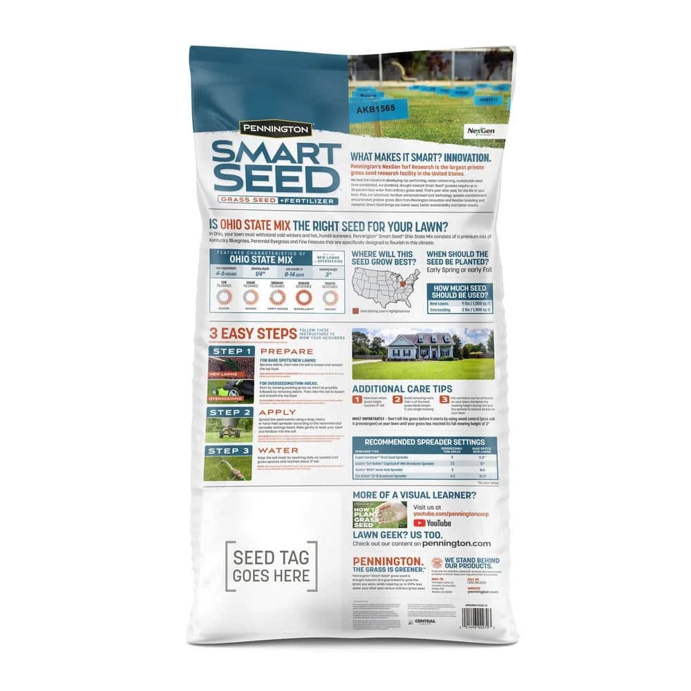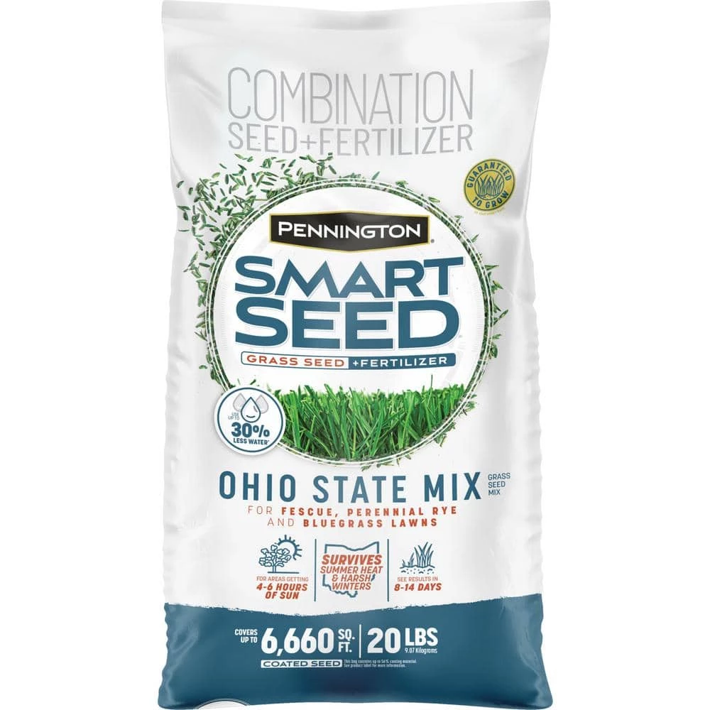 In Ohio, your lawn must withstand cold winters and hot, humid summers. Pennington Smart Seed Ohio Mix consists of a premium mix of Kentucky Bluegrass, Perennial Ryegrass and Fine Fescues that are specifically designed to flourish in this climate. Smart Seed Ohio grass seed mix is disease resistant and drought tolerant and contains just the right amount of fertilizer to help your lawn succeed. in areas of your lawn that receive 4-hours to 6-hours of sun daily, plant this grass seed mix in the early spring or early fall and see results in 8-days to 14-days. This 20 lbs. bag covers up to 6,660 sq. ft. for overseeding an existing lawn and 2,220 sq. ft. for starting a new lawn from scratch. What makes Smart Seed smart. It’s our industry-leading innovation. Pennington’s NexGen Turf Research is the largest private grass seed research facility. We lead the industry in developing top-performing, water-conserving, sustainable seed. Once established, our purebred, drought-tolerant Smart Seed grass requires up to 30% less water than ordinary grass seed. That’s year after year, for the life of your lawn. Plus, our advanced, Fertilizer-Enhanced Seed Coat technology speeds establishment and promotes greener grass. Born from Pennington innovation and NexGen breeding and research, Smart Seed brings you better seed, better sustainability and better results.