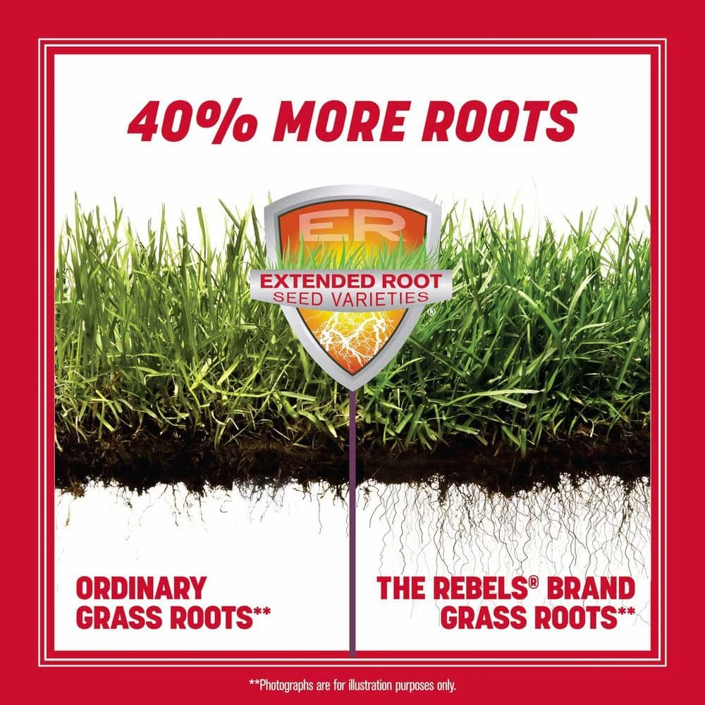 Tall fescue is valued for its adaptability to a wide range of climates and its tolerances for cold, heat, drought and shade. Ideal for the northern and transition zones, Pennington The Rebels Tall Fescue has represented the finest quality of tall fescue on the market for decades. This grass is tough. It has thick, deep, and dense roots that result in excellent drought and traffic tolerance. In areas of your yard that receive 4-hours to 6-hours of sunlight, plant it in early spring or early fall and see results in 8-days o 16-days. This 3 lbs. bag covers up to 750 sq. ft. for overseeding an existing lawn and 250 sq. ft. for starting a new lawn from scratch. The Roots of The Rebels Brand dates back to 1979, when turf researchers at Rutgers University released a revolutionary new grass. Known as Rebel, it was the very first example of what’s now known as turf-type tall fescue. Compared to traditional tall fescue, Rebel offered lower growth, finer texture, darker color and denser turf – plus the drought tolerance that makes turf-type tall fescue a homeowner favorite. Generations later, with up to 40% more roots than ordinary grass, The Rebels Brand Extended Root seed varieties represent the best turf-type tall fescue on the market. With roots like those, it’s only natural that The Rebels Brand carries the Pennington name.