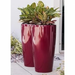 XBRAND 30 in. Tall Red Plastic Nested Self Watering Indoor/Outdoor Tall Round Planter Pot (Set of 2)