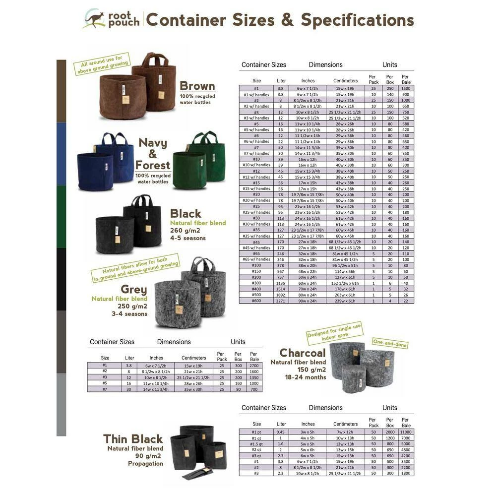 A greener solution for a greener planet. Root Pouch is an innovative, award winning product line made from 100% recycled materials. Cloth containers are great for year round planting, they are light-weight and flexible which makes them easy to move around and perfect for a variety of plants.