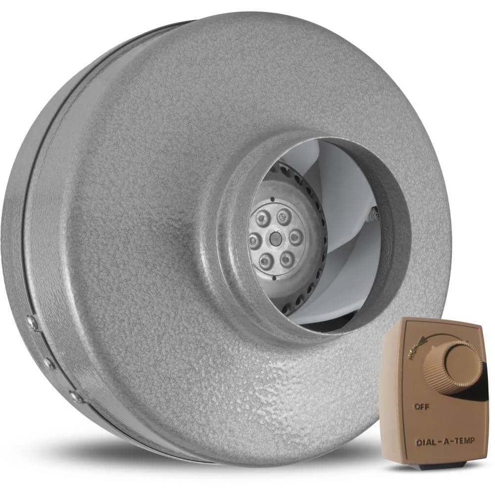 Manufactured in Canada, the Vortex Power Fans In-Line Duct Blowers are ideal for use in general purpose exhaust and duct boosting applications. The variable speed control fan kit includes a Vortex Power fan VTX400 and a Dial-A-Temp speed control. This kit also comes with galvanized mounting brackets allowing either horizontal or vertical installation.