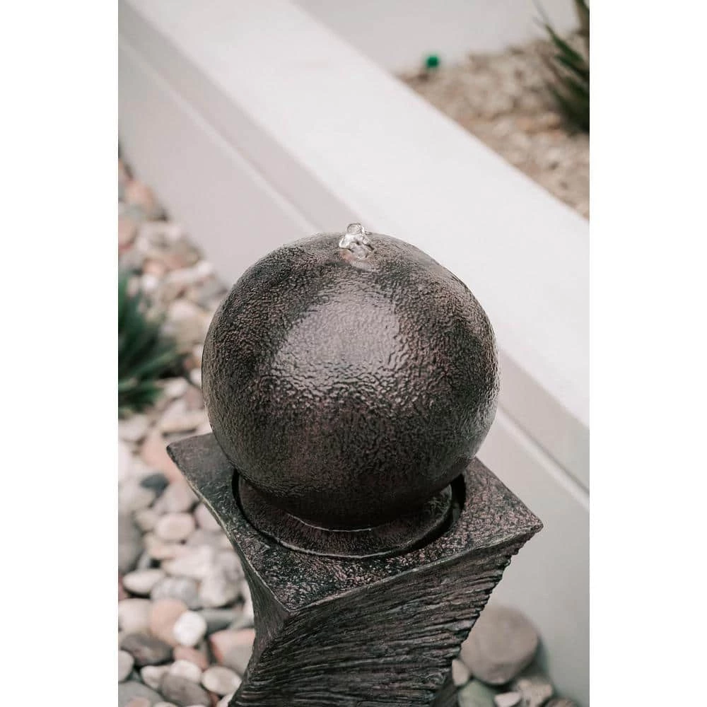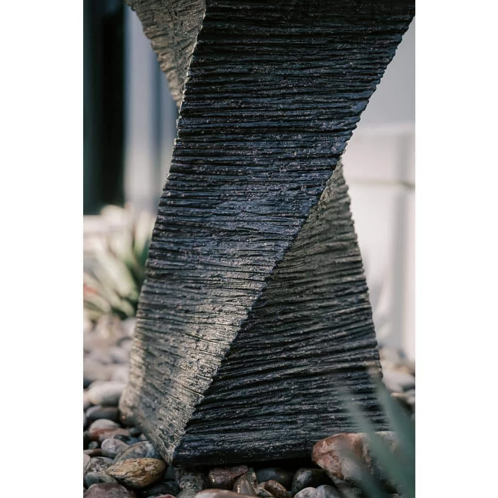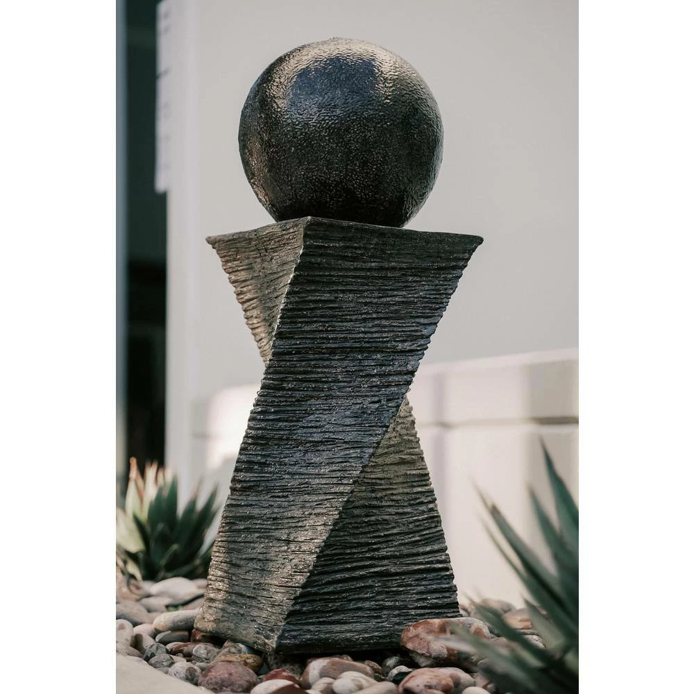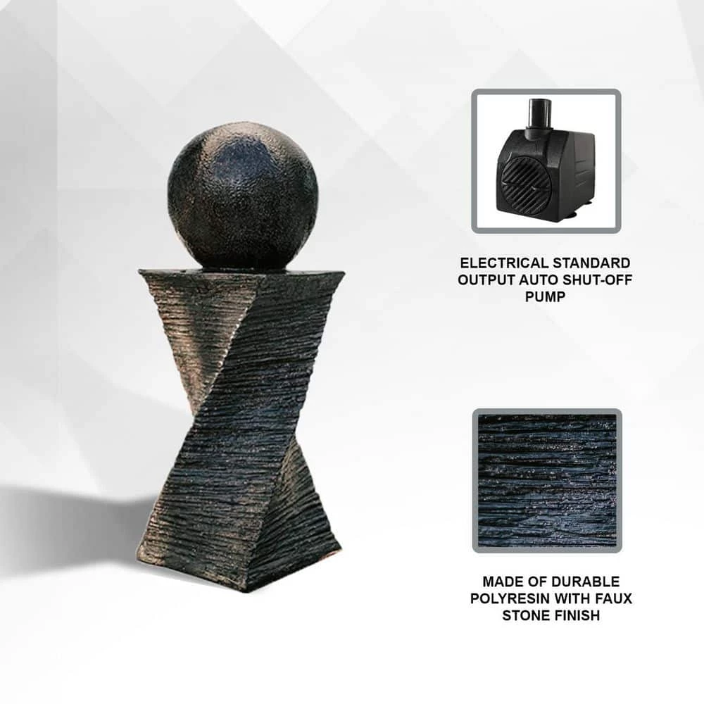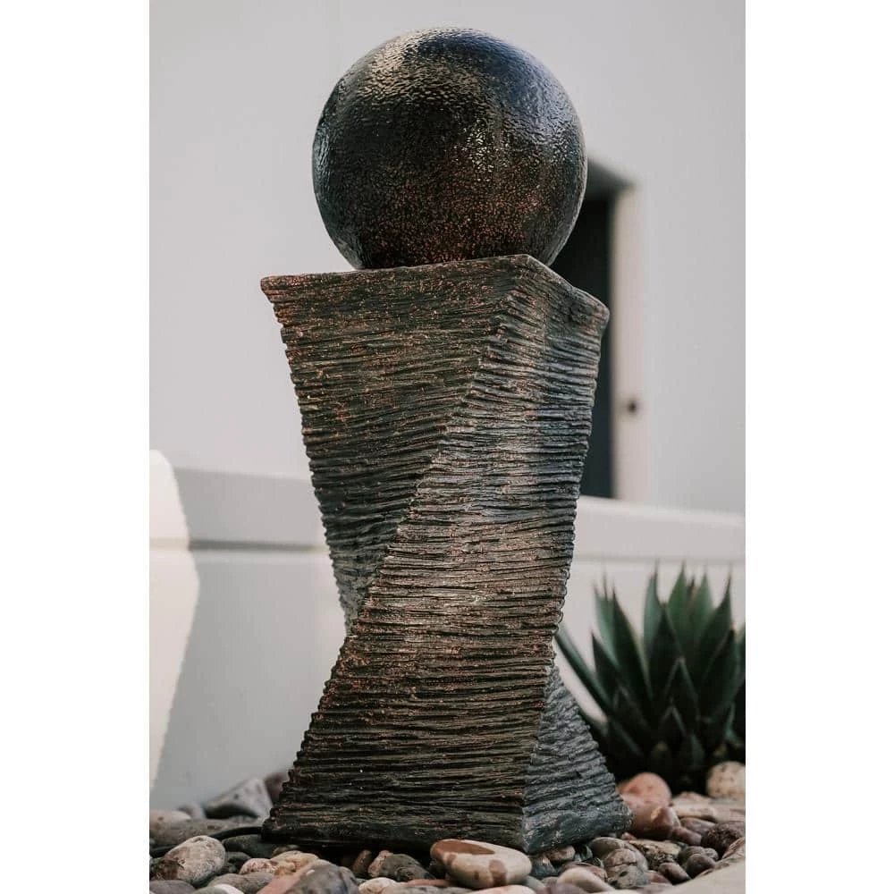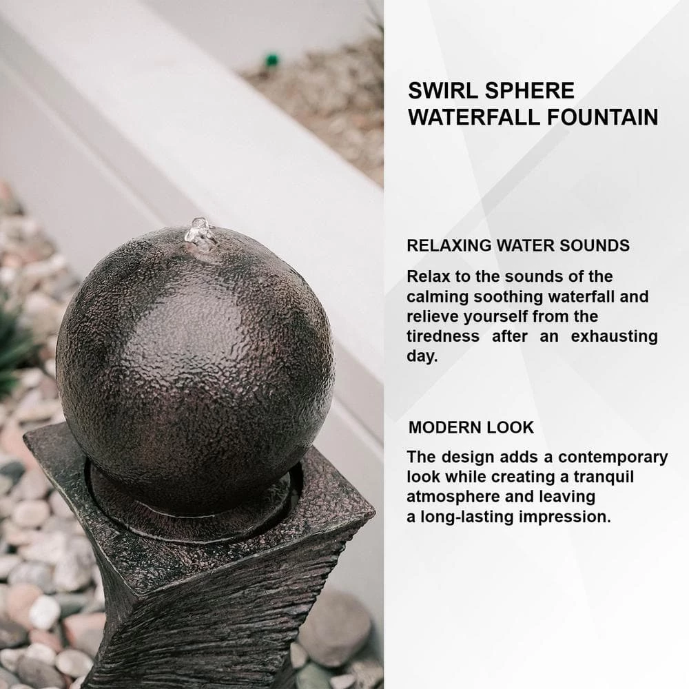 - Swirl sphere outdoor waterfall fountain: decorate your garden, patio, porch, deck or any outdoor space with this glamorous curved swirl waterfall fountain with black finish and create an inviting and enjoyable ambiance