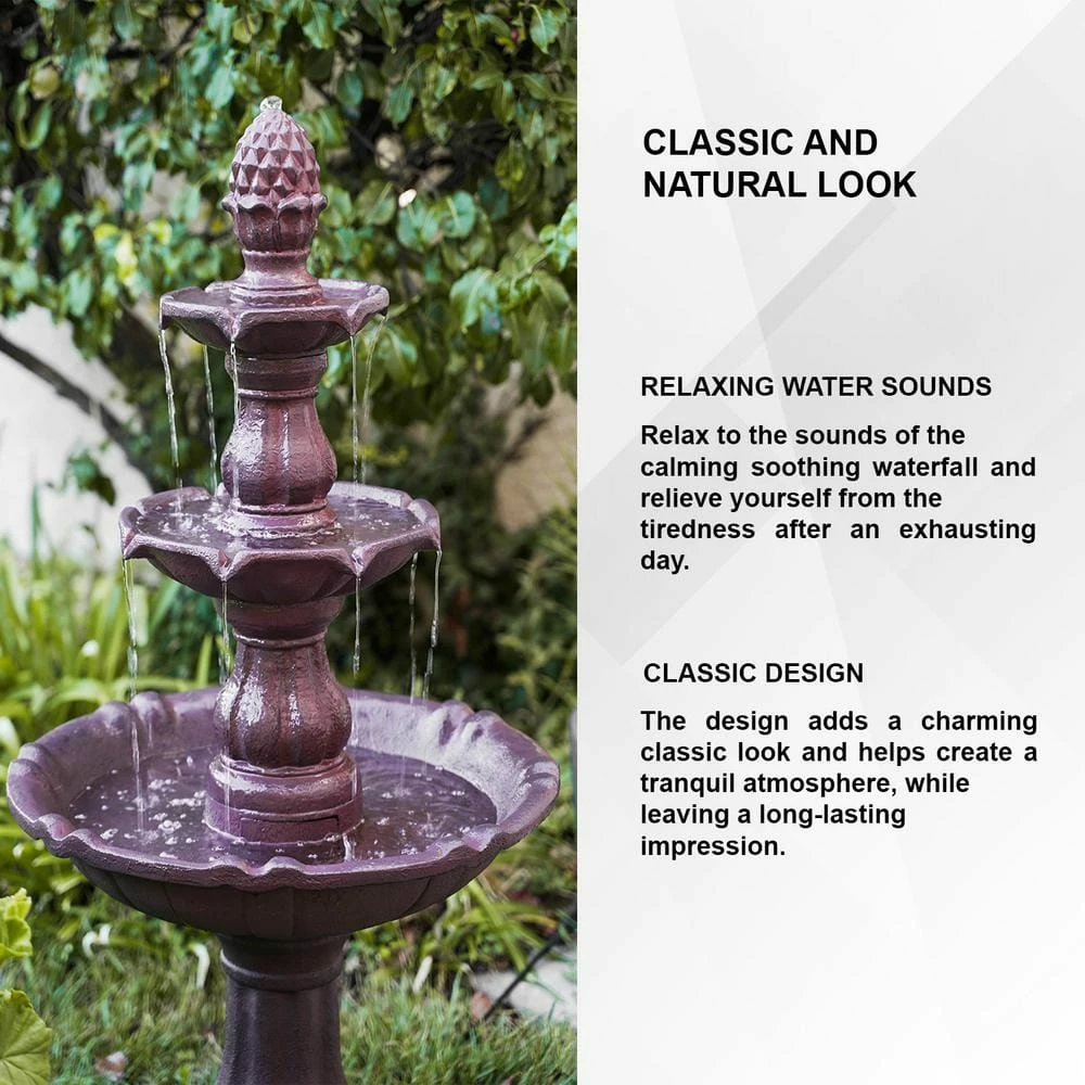 - 3 TIER OUTDOOR WATERFALL FOUNTAIN: Decorate your garden, patio, porch, deck or any outdoor space with this glamorous 3 tier freestanding brown waterfall fountain and create an inviting ambiance where everyone enjoys